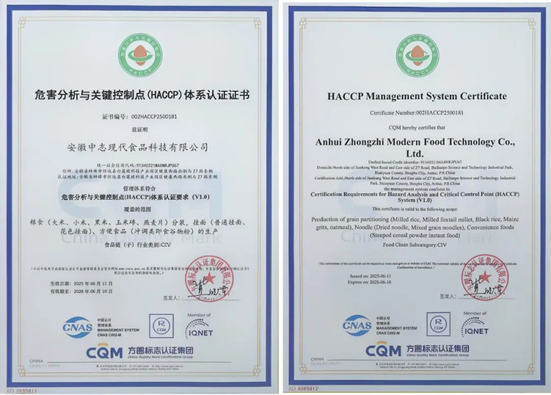 近日,中志集团旗下核心食品生产主体——安徽中志现代食品科技有限公司正式通过质量管理体系认证(ISO9001:2015)、职业健康安全管理体系认证(ISO45001:2018)、食品安全管理体系认证(ISO22000:2018)、危害分析与关键控制点体系认证(HACCP)等多项国际权威管理体系认证,标志着公司在产品质量、安全生产、食品安全管理等领域已达到国际标准化水平,为“中志集团生产板块”的品质升级注入强劲动能。